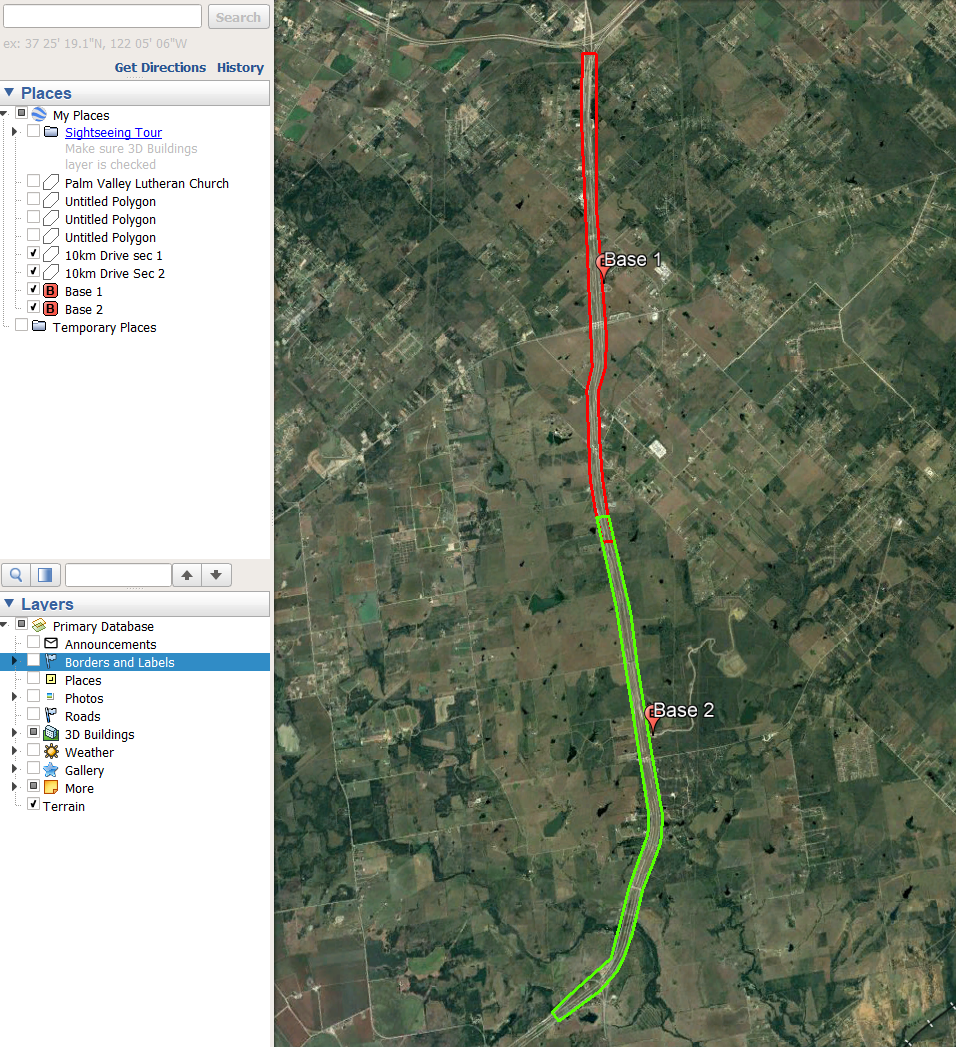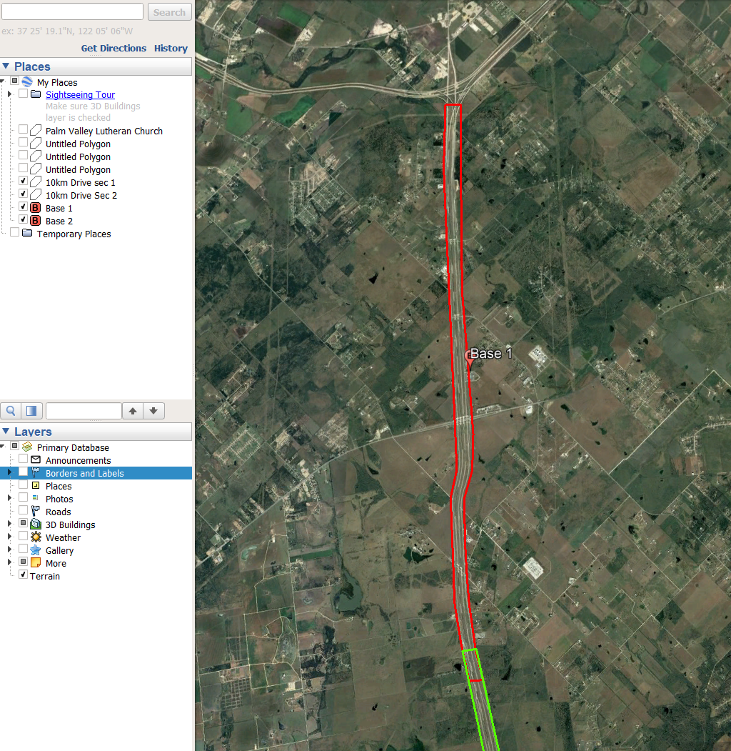 PLS recommends keeping your AOI to within 10 kilometers of the GNSS base station. If you have a very large area that needs to be mapped along a corridor, breaking the job up into 10-20 km sections that overlap is better for processing and acquisition. Place the GNSS base station in the middle of each section and run the base throughout the entire collection process for that section. See a visual example below.