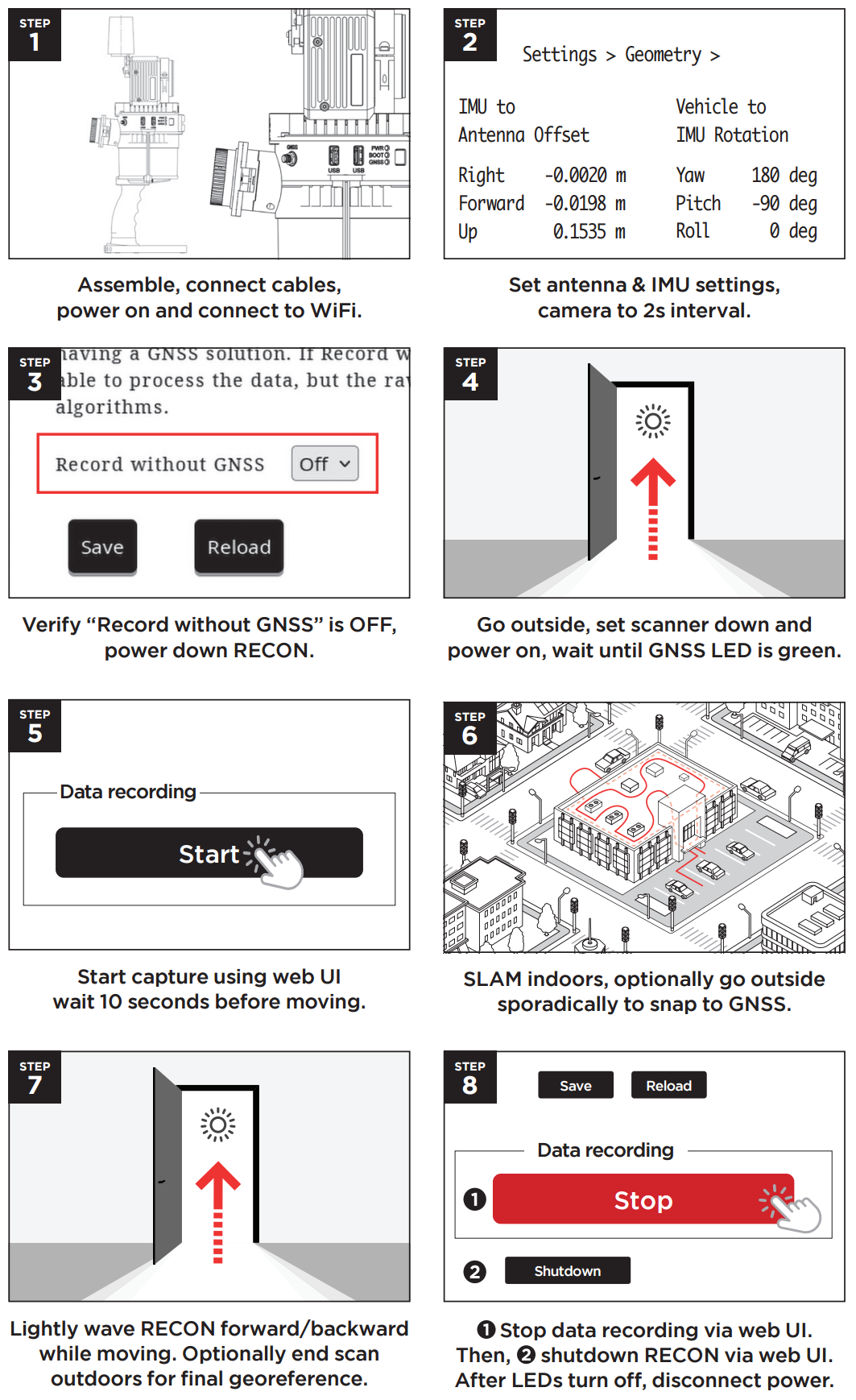 <figure><img src="https://2222094320-files.gitbook.io/~/files/v0/b/gitbook-x-prod.appspot.com/o/spaces%2FdEevfLZRIk38LUPwDa4V%2Fuploads%2FQRMexE6vhT8mIxYGTw3X%2Frv3slam.png?alt=media&#x26;token=34d2111e-4038-4619-8c89-f370a796f233" alt=""><figcaption><p>Recon-XT Quick Start Guide for SLAM Handle.</p></figcaption></figure>