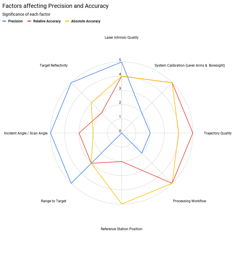 When evaluating accuracy it is essential to have a clear understanding of what the metric is representing, how it was measured, and what factors contribute to its achievement. To understand what is meant by the term “accuracy” we break it down into 3 categories: Precision (Intraswath), Relative Accuracy (Interswath), and Absolute Accuracy.