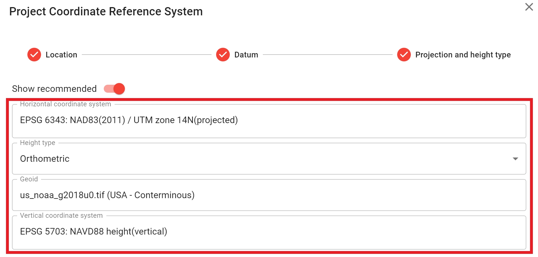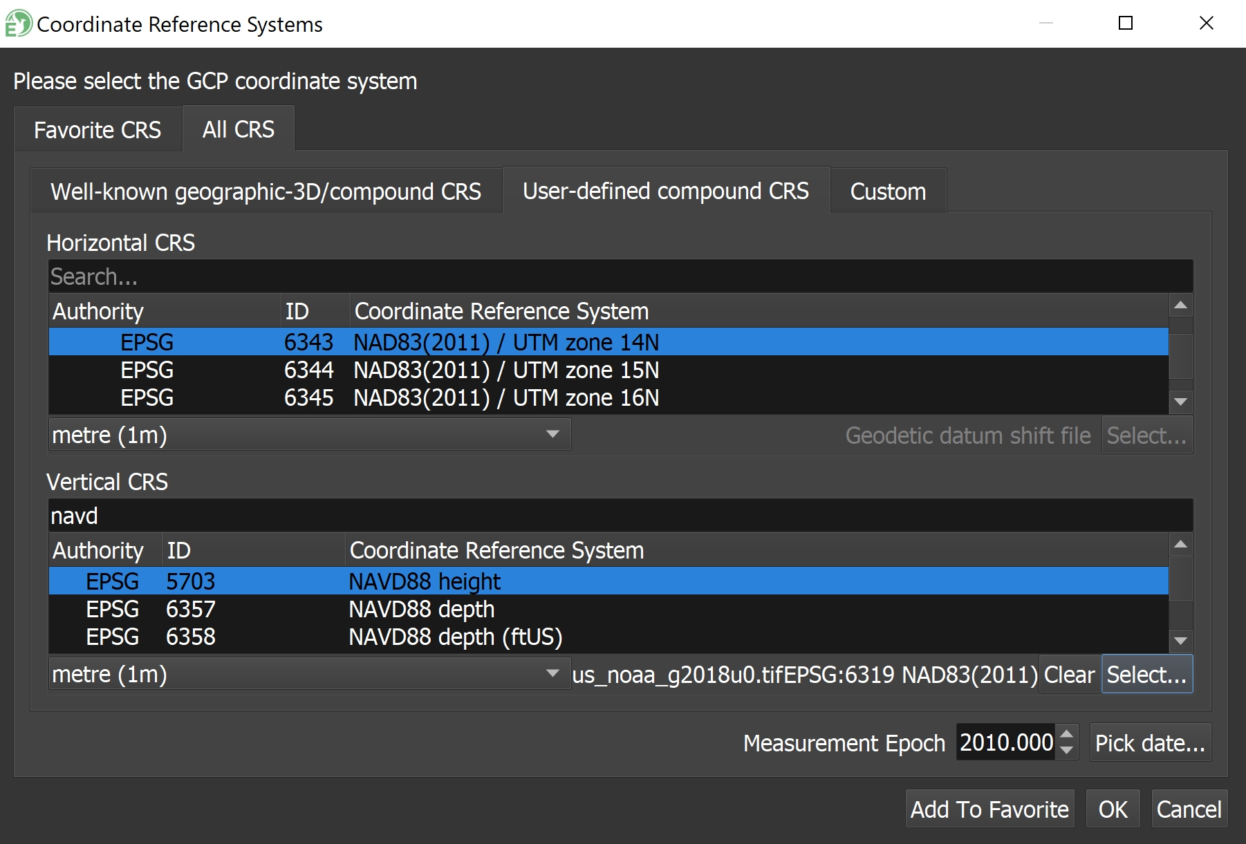 Note: Orthometric vertical datum’s require user to select a geoid model.