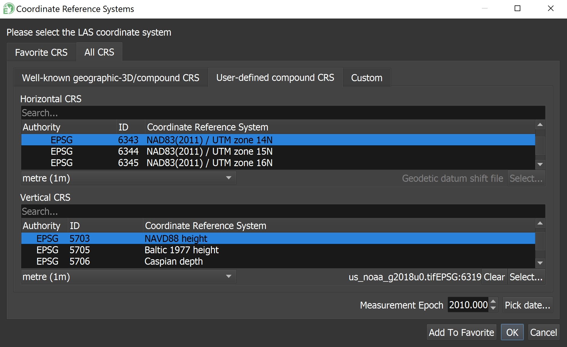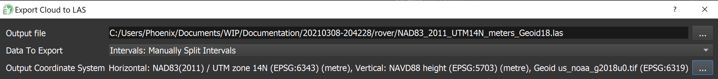 Desired output for LAS/LAZ: NAD 83 (2011) 2010.000 UTM 14 North Meters, NAVD88 - Geoid18