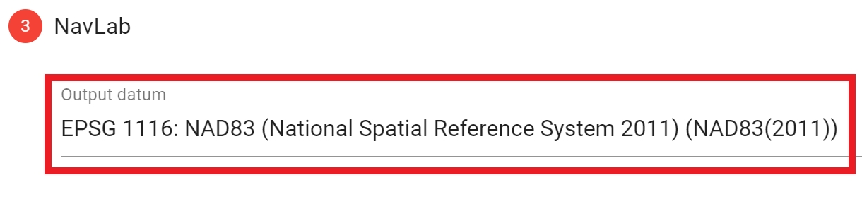 In step three of a Navlab Pipeline, select the output datum as NAD83(2011)