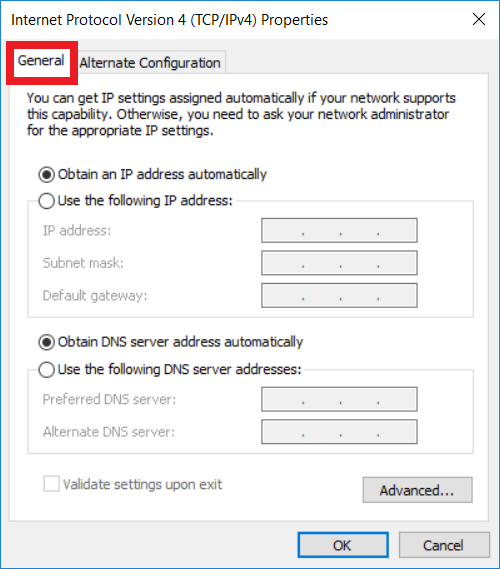 7. Click “OK” and then “Close” the ethernet adapter properties. Your computer should now have an alternate IP address configured.
