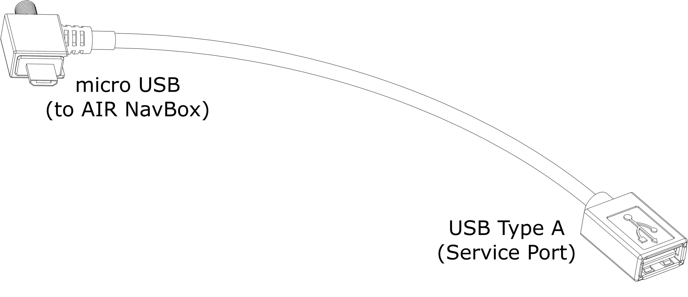 Use this cable for debugging/service purposes of the AIR NavBox. It will connect to the side micro USB port on the NavBox.