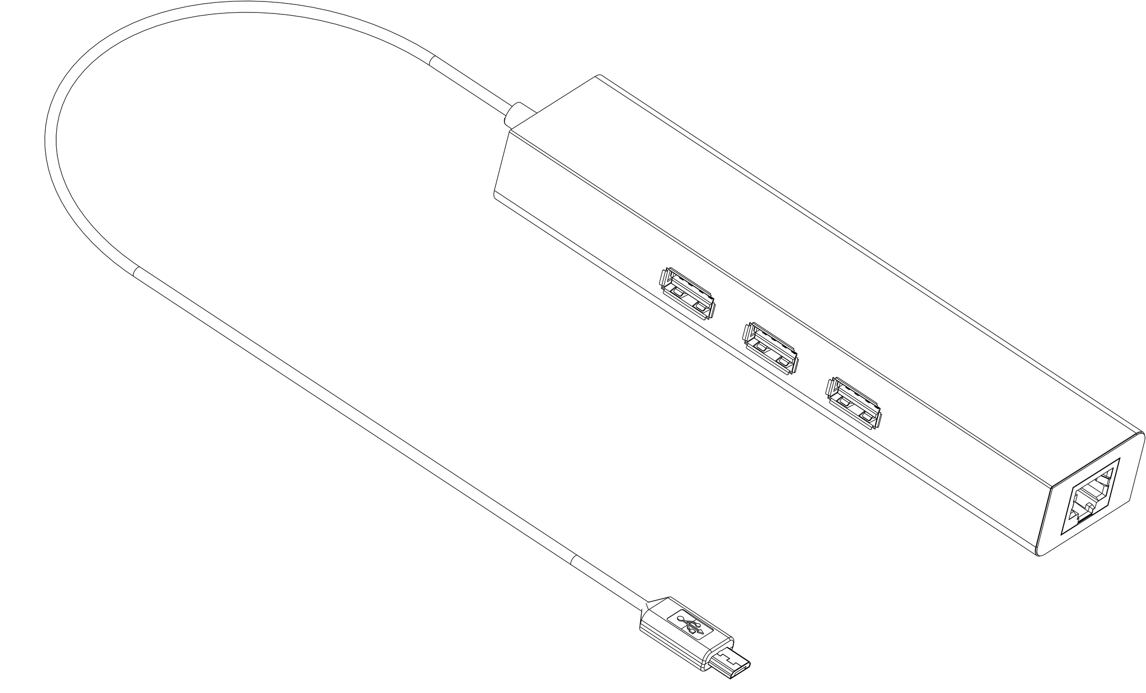 This USB hub with integrated Ethernet adapter should be used for debugging purposes or when a wired Ethernet connection to rover (from the notebook) is required. Connect this adapters micro USB side to the AIR NavBox side USB port and a standard RJ45 Ethernet cable between the adapter and your notebook.