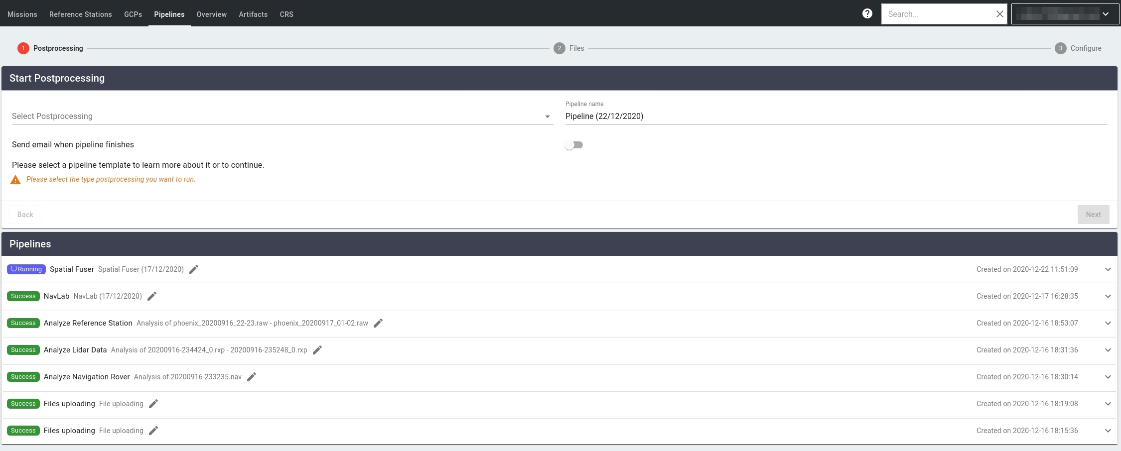 LiDARMill offers numerous data processing tools, called “Pipelines.” There are two types of pipelines, automatically generated pipelines and manual pipelines. Manual pipelines require user input to select from various pipeline parameters.