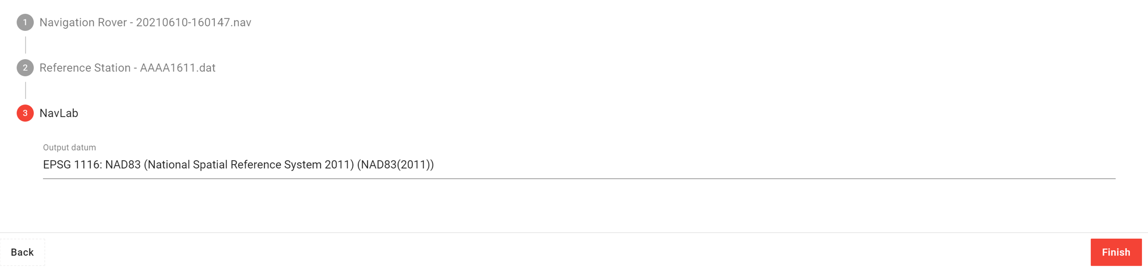 NavLab can process multiple navigation files and reference stations at the same time. Once you've selected the files you'd like to use in processing, click "Next".