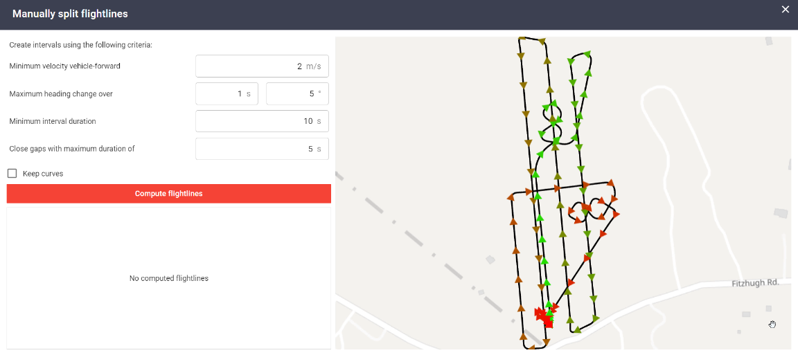 Note: You can reconfigure parameters and click "compute flightlines" to recompute autosplit intervals.