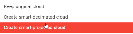 Create smart-projected cloud: Projects every original point to a computed surface. It keeps all the points from the cloud, but moves or 'projects' them to the computed surface.