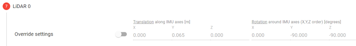 Note: Lever arm offsets are now measured along the IMU axis. For the "Rotation" section, rotate the sensor frame into the IMU frame by rotating around the sensor axes in ZXY order (rotate around rotated axes for the 2nd and 3rd rotation). Refer to the "Orientations and Offsets" section of the user manual for more information