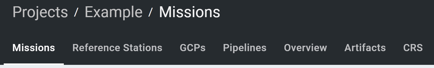 With the project created, you will be directed to the "Missions" page where you can begin to upload data for one or multiple missions.