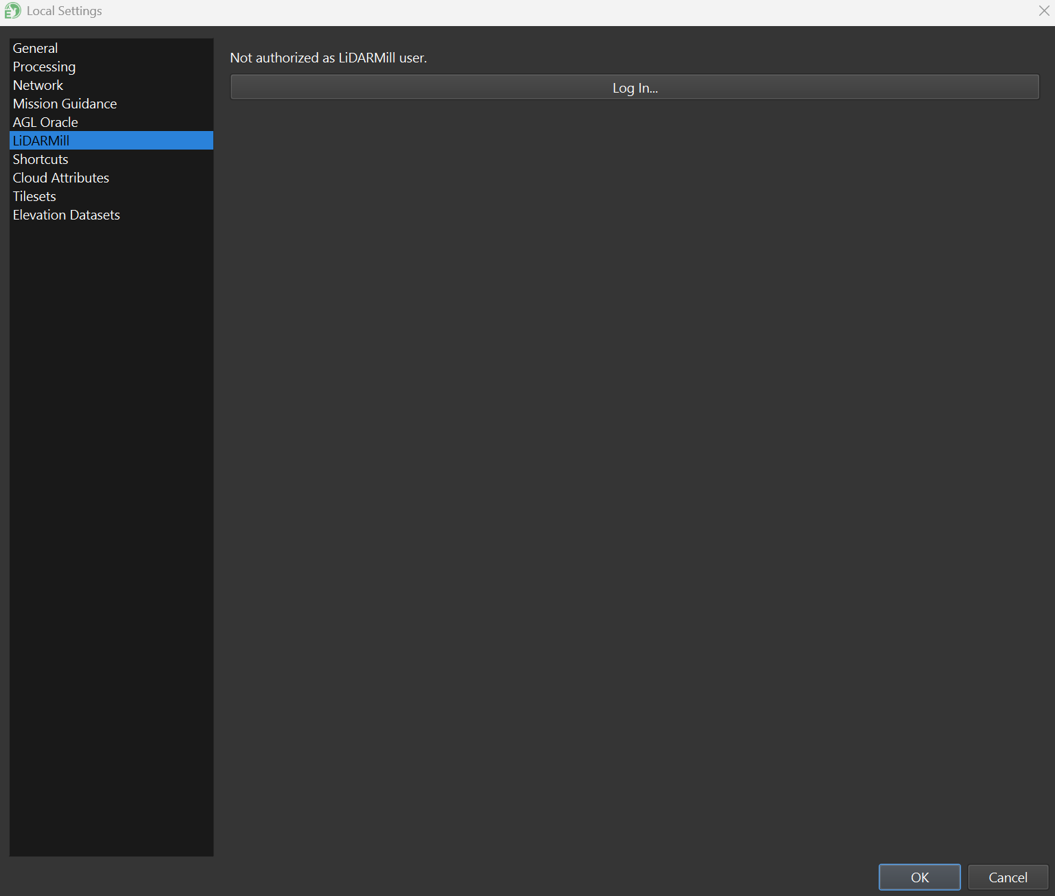 Users can use this menu to login to LiDARMill. This enables them to access saved [reference station positions ](https://docs.phoenixlidar.com/spatialexplorer-8-and-9/user-interface/windows/project/reference-stations)stored on LiDARMill: