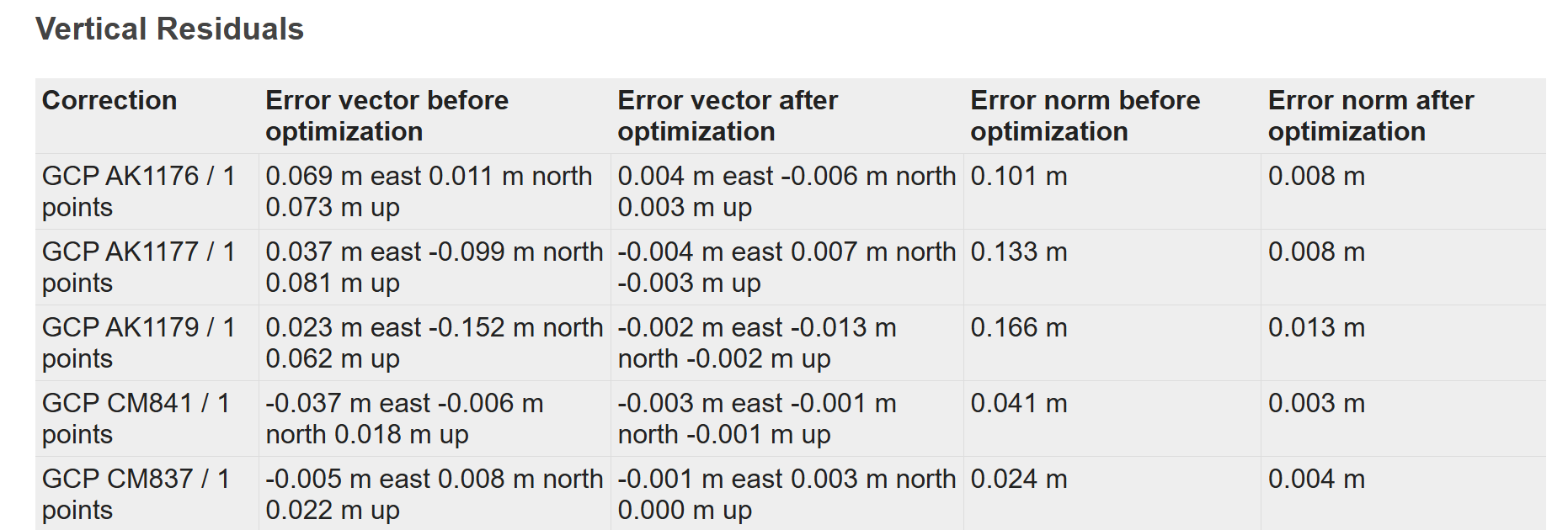 3D correction residuals, pre and post-optimization, are displayed in the LiDARSnap trajectory report:
