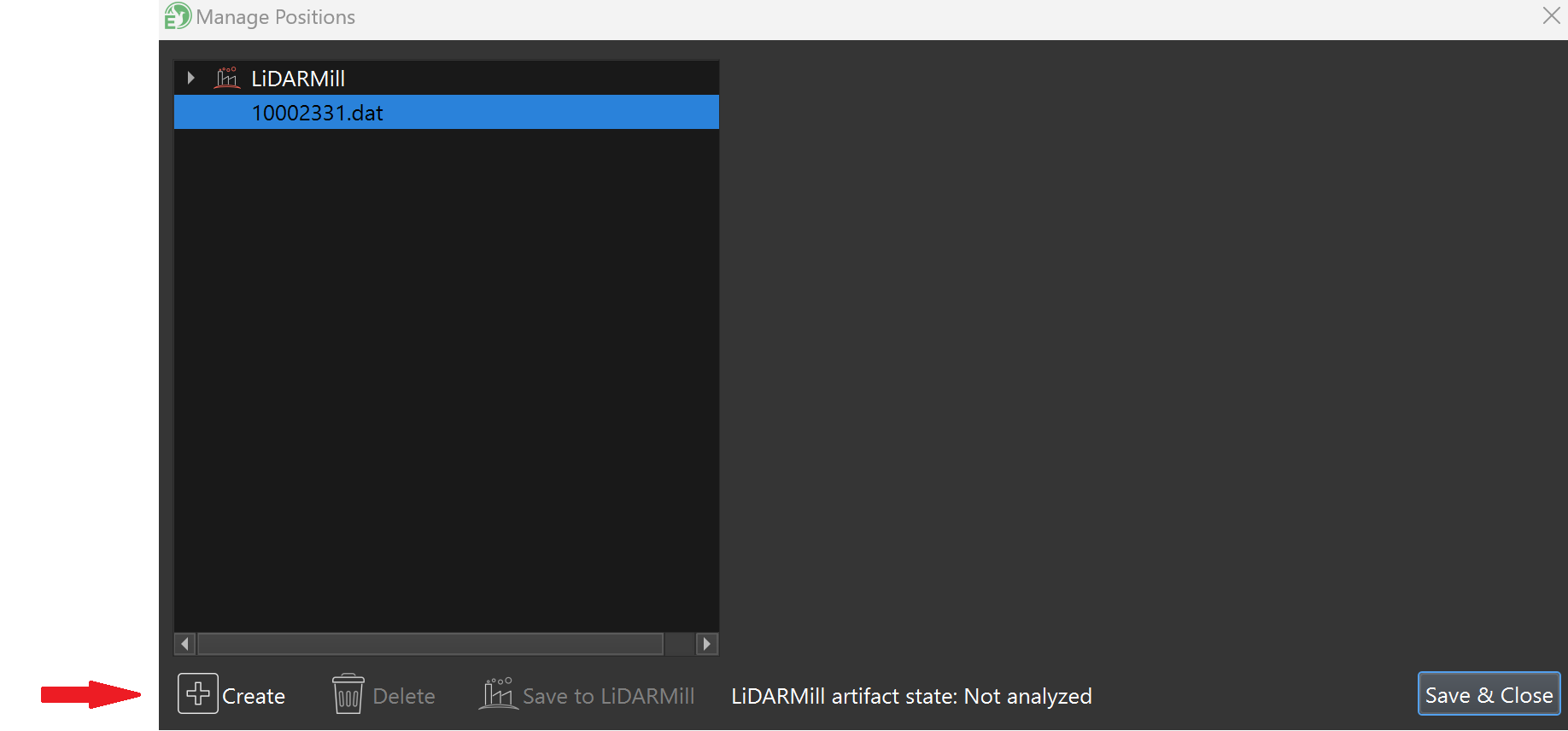 If you need to create a new position, select **Manage Positions**, select the reference station file from the banner on the left, then click **Create** at the bottom: