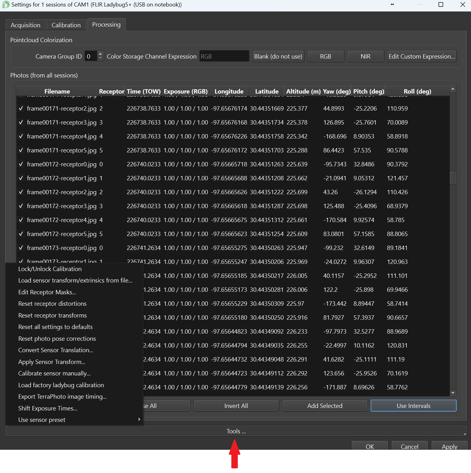 Various tools associated with the camera are located in the Tools menu at the bottom of the camera settings menu:
